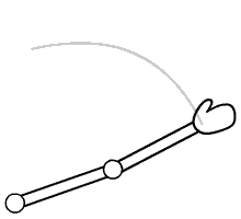 Even when objects could be moving in a straight line, we can make use of arcs to exaggerate an action and add personality to a scene. Arcs also help to keep your proportions constant from frame to frame. Here is an example: